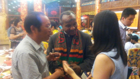 8月2日晚,我公司銘澤機械董事長李新生與各位代表在王爺府--白家大院歡迎贊比亞共和國前副總統(tǒng)盧潘多.姆瓦佩,宴會期間與贊比亞共和國前副總統(tǒng)盧潘多.姆瓦佩、杰出華商協(xié)會主席盧俊卿、執(zhí)行主席韓薇進行親切交談。