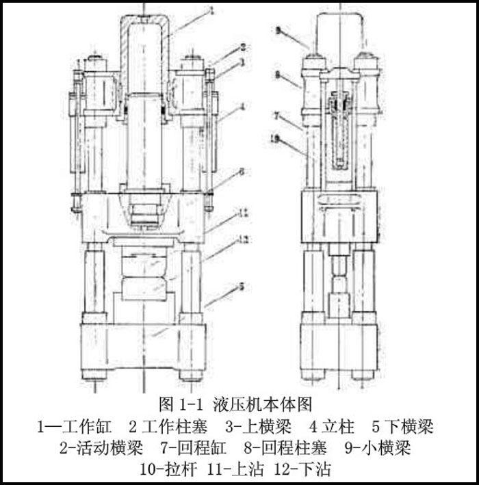 機(jī)架部上下橫梁,立柱組成。上下橫梁全部由整體鑄鋼件制作而成,上下橫梁用四根立柱由內(nèi)外螺母連接,承受工作時(shí)的張力。
