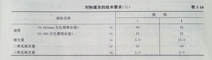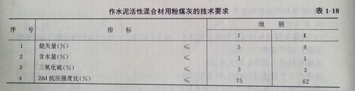 (2)水泥生產(chǎn)中作活性混合材的粉煤灰應滿足表1—18的要求。